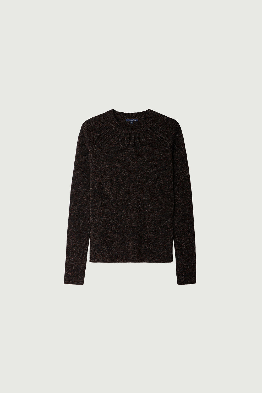 Long-sleeved ribbed pullover in lurex black/caramel